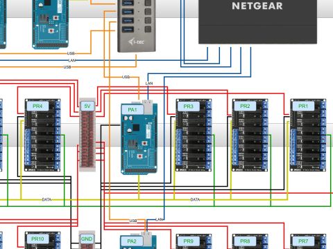 Arduino Mega + Ethernet / DIN Cena: 2 390,00 Kč s DPH Deska Arduino Mega Original R3 a Arduino Ehternet Shield 2 včetně DIN držáku. Tuto desku používáme v projektech PiHome jako základní stavební kámen domácí automatizace. Arduino s Ethernet shieldem je kompatibilní s našimi vzorovými sketch v tutoriálu Jak na domácí automatizaci svépomocí. Arduino Mega disponuje počtem až 50 vstupů/výstupů, to znamená, že k němu pripojíte až 6 externích 8x SSR Relay modulů. Takto je možné ovládat až 48 světel/zásuvek/čerpadel atd. na jedno Arduino Mega nebo připojit 50 tlačítek nebo 50 senzorů (přes sběrnici i více). Schéma zapojení v projektu PiHome naleznete v tutorialu. Mapu pinů naleznete v galerii. Instalace na DIN lištu je možná vertikálně nebo horizontálně. Finální fixace DIN nožiček k podložce se provede přibaleným sekundovým lepidlem. Díly držáku jsou kompatibilní se stavebnicí LEGO®. Pod deskou je prostor pro kabeláž. Vlastnosti produktuVýška: 101.5 mm Šířka: 53.3 mm Hloubka (od DIN lišty): 62 mm Detailní technické informace o desce Arduino Mega na stránkách výrobce.